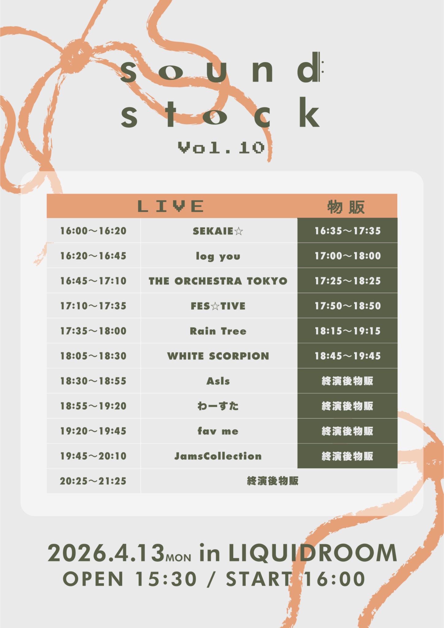 4月13日(月)「sound stock Vol.10」特典会 詳細のお知らせ